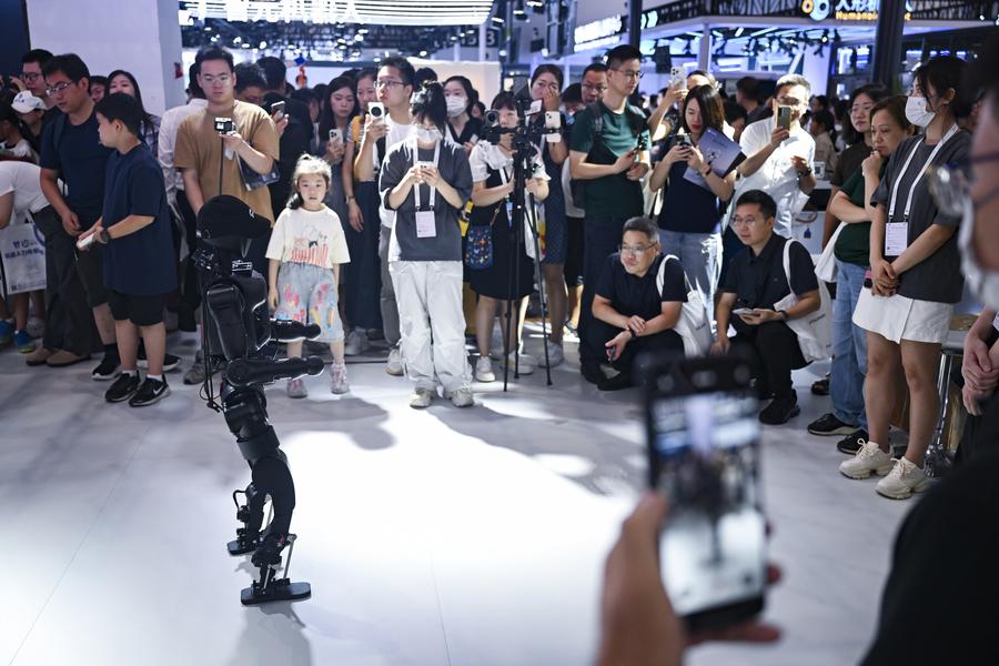 Visitors interact with a robot dog at the 2025 World AI Conference (WAIC) in east China's Shanghai, July 29, 2025. (Xinhua/Chen Haoming)Visitors watch a robot dancing at the 2025 World AI Conference (WAIC) in east China's Shanghai, July 29, 2025. (Xinhua/Chen Haoming)A visitor receives a game prize from a robot at the 2025 World AI Conference (WAIC) in east China's Shanghai, July 29, 2025. (Xinhua/Fang Zhe)A child experiences riding a quadruped robot at the 2025 World AI Conference (WAIC) in east China's Shanghai, July 29, 2025. (Xinhua/Fang Zhe)Visitors view a robot dog performing patrol and inspection tasks at the booth of the State Grid Corporation of China at the 2025 World AI Conference (WAIC) in east China's Shanghai, July 29, 2025. (Xinhua/Chen Haoming)A visitor interacts with a robot equipped with intelligent dexterous hands at the 2025 World AI Conference (WAIC) in east China's Shanghai, July 29, 2025. (Xinhua/Fang Zhe)Visitors watch robots showcasing their skills at the 2025 World AI Conference (WAIC) in east China's Shanghai, July 29, 2025. (Xinhua/Chen Haoming)Visitors watch a robot working at a popcorn stand at the 2025 World AI Conference (WAIC) in east China's Shanghai, July 29, 2025. (Xinhua/Fang Zhe)