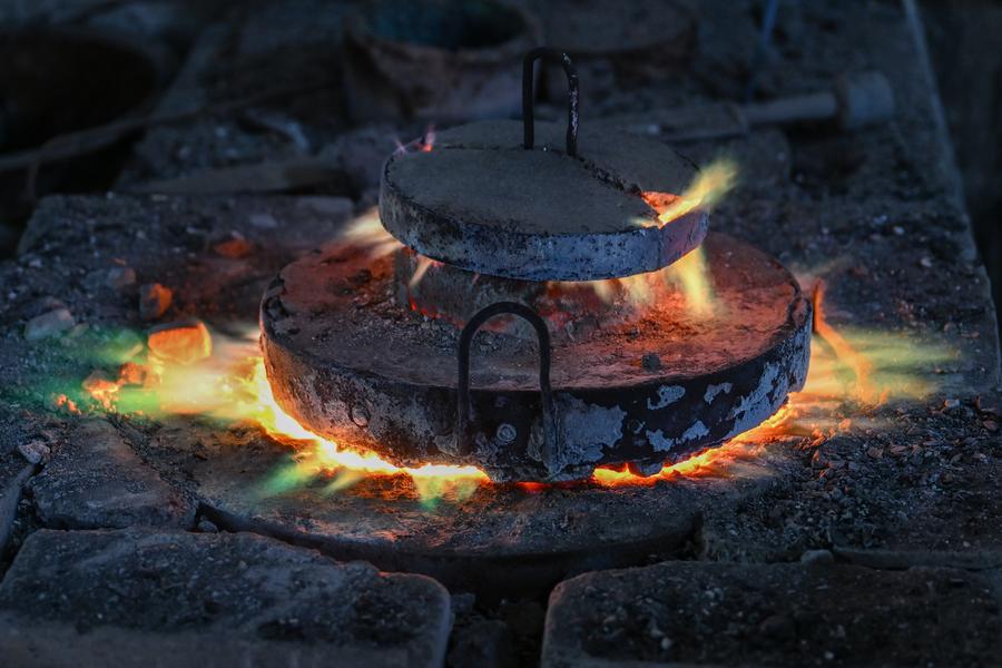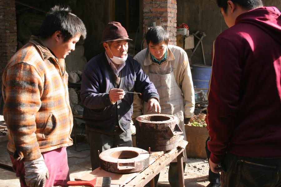 Except for selling bronze ware artworks according to orders, their workshop today also cooperates with museums to repair and replicate cultural relics. Moreover, they also take part in important exhibitions and open classes on campus. "Making bronze wares is never an easy work," said Ao Xinghua, "In hot summer, we have to stand for 10 hours beside the copper melting furnace which has a temperature of 1,200 to 1,600 degrees Celsius."