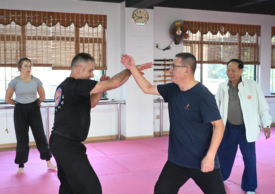 British students practice the Dishuquan at a martial arts club in Fuzhou, southeast China's Fujian Province, Nov. 14, 2025. (Xinhua/Lin Shanchuan)Neil Johnson (L) practices the Dishuquan with Chinese Kung Fu enthusiast Lin Zhonggeng at a martial arts club in Fuzhou, southeast China's Fujian Province, Nov. 14, 2025. (Xinhua/Lin Shanchuan)Neil Johnson (C) communictes with Chinese Kung Fu enthusiast Li Aming at a martial arts club in Fuzhou, southeast China's Fujian Province, Nov. 14, 2025. (Xinhua/Lin Shanchuan)Neil Johnson (L, front) practices the Dishuquan with Chinese Kung Fu enthusiast Li Aming at a martial arts club in Fuzhou, southeast China's Fujian Province, Nov. 14, 2025.