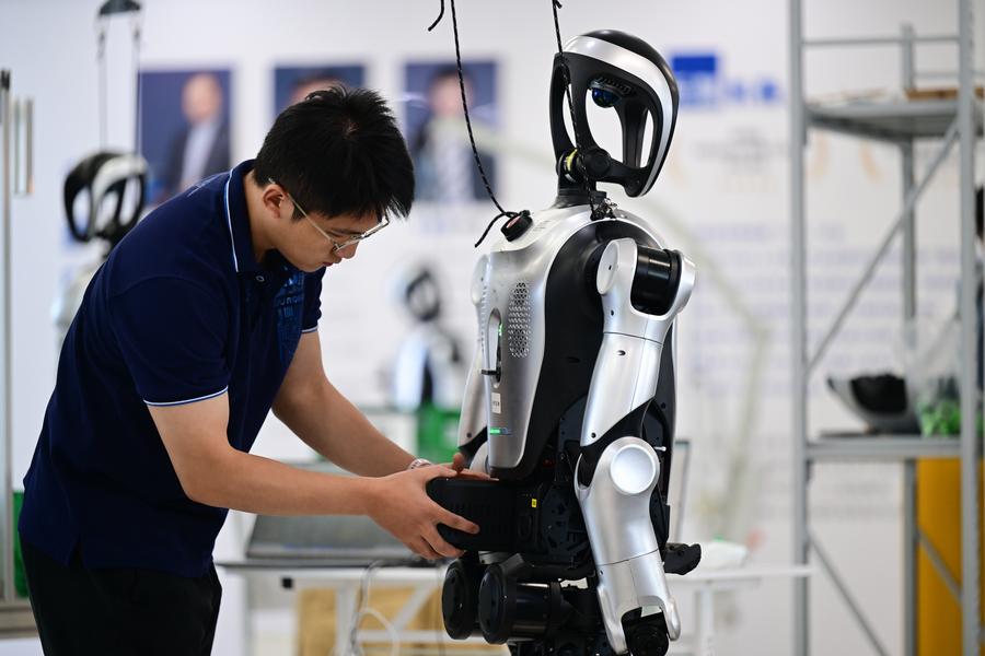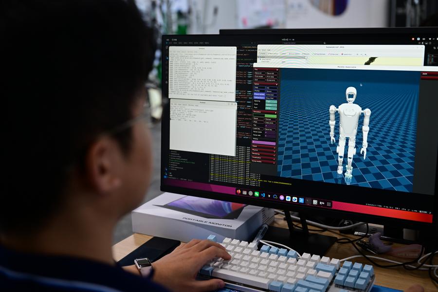 An engineer observes a humanoid robot grabbing a component at a laboratory of Leju Robotics in Hefei, east China's Anhui Province, Oct. 24, 2025. (Xinhua/Zhou Mu)An engineer adjusts a humanoid robot at a laboratory of Leju Robotics in Hefei, east China's Anhui Province, Oct. 24, 2025. (Xinhua/Zhou Mu)A staff member trains a humanoid robot to play Chinese diabolo (kongzhu) for data collection purpose at Zerith, a robotics company, in Hefei, east China's Anhui Province, Nov. 25, 2025. (Xinhua/Zhou Mu)An engineer installs battery for a humanoid robot at Leju Robotics in Hefei, east China's Anhui Province, Oct. 24, 2025. (Xinhua/Zhou Mu)A staff member trains a humanoid robot to fetch objects for data collection purpose at Zerith, a robotics company, in Hefei, east China's Anhui Province, Nov. 25, 2025. (Xinhua/Zhou Mu)A staff member trains a humanoid robot to fetch objects for data collection purpose at Zerith, a robotics company, in Hefei, east China's Anhui Province, Nov. 25, 2025. (Xinhua/Zhou Mu)An engineer runs a simulation program at Leju Robotics in Hefei, east China's Anhui Province, Oct. 24, 2025. (Xinhua/Zhou Mu)