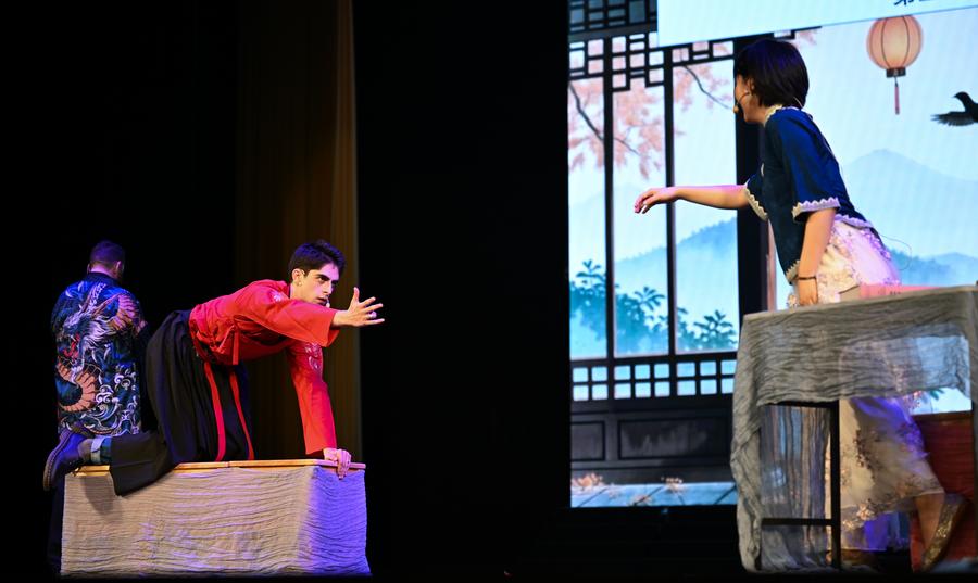 NANCHANG, Dec. 2 (Xinhua) -- With a Chinese performer portraying Du Liniang, the female lead, and an Irish performer as Liu Mengmei, the male lead, an English-language rendition of the Kunqu Opera masterpiece "The Peony Pavilion" came to life at the Seventh Tang Xianzu International Theatre Exchange Month in Fuzhou City, east China's Jiangxi Province.