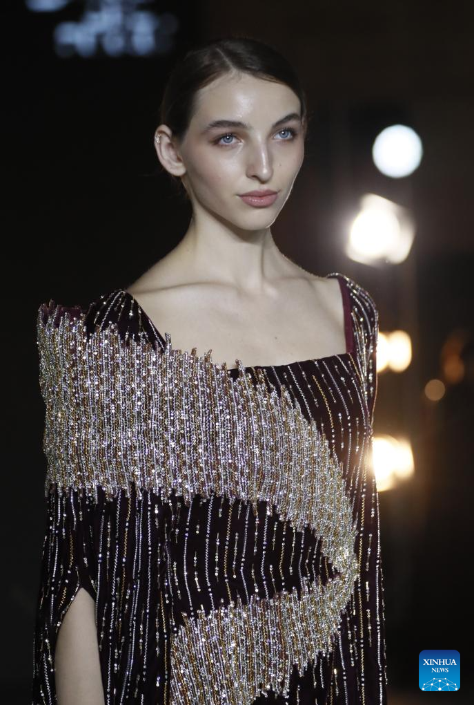 A model walks the runway at the Azerbaijan international fashion week in Baku, Azerbaijan, on Dec. 9, 2025. The two-day international fashion week concluded here on Tuesday. (Xinhua/Chen Junfeng)