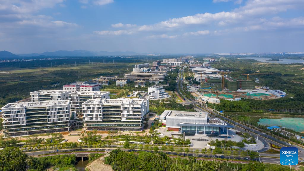 An aerial drone photo taken on Nov. 23, 2025 shows a view of the Hainan Free Trade Port Resort Software Community in south China's Hainan Province. China's Hainan Free Trade Port (FTP) is preparing for island-wide special customs operations, a major milestone in the opening-up drive of the world's second-largest economy despite rising protectionism worldwide.