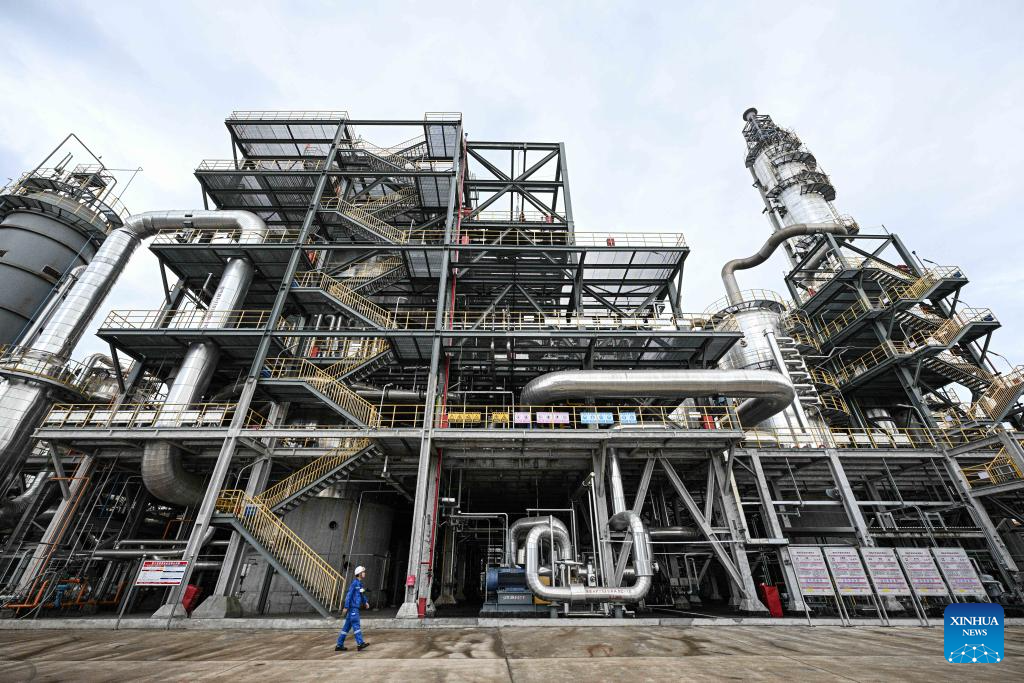 This photo taken on Nov. 7, 2025 shows a view of a factory of the China National Offshore Oil Corporation (CNOOC) in Dongfang Lingang Industrial Park in south China's Hainan Province. China's Hainan Free Trade Port (FTP) is preparing for island-wide special customs operations, a major milestone in the opening-up drive of the world's second-largest economy despite rising protectionism worldwide.