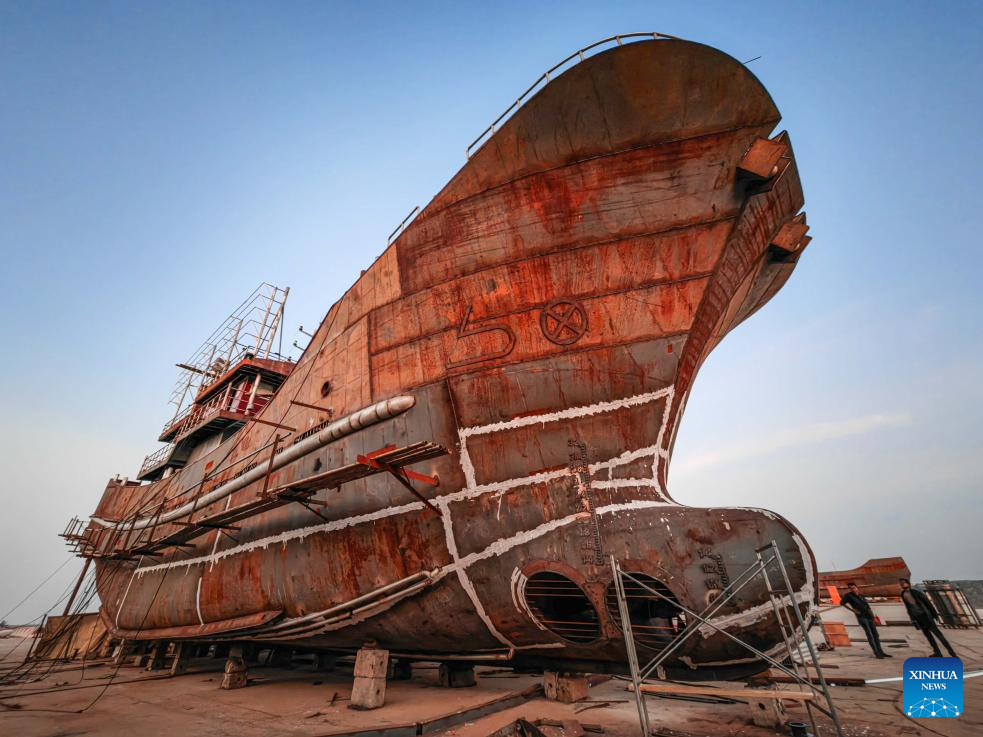 This photo taken on Nov. 22, 2025 shows a view of a shipbuilding company in Lingao Jinpai Port Development Zone, south China's Hainan Province. China's Hainan Free Trade Port (FTP) is preparing for island-wide special customs operations, a major milestone in the opening-up drive of the world's second-largest economy despite rising protectionism worldwide.