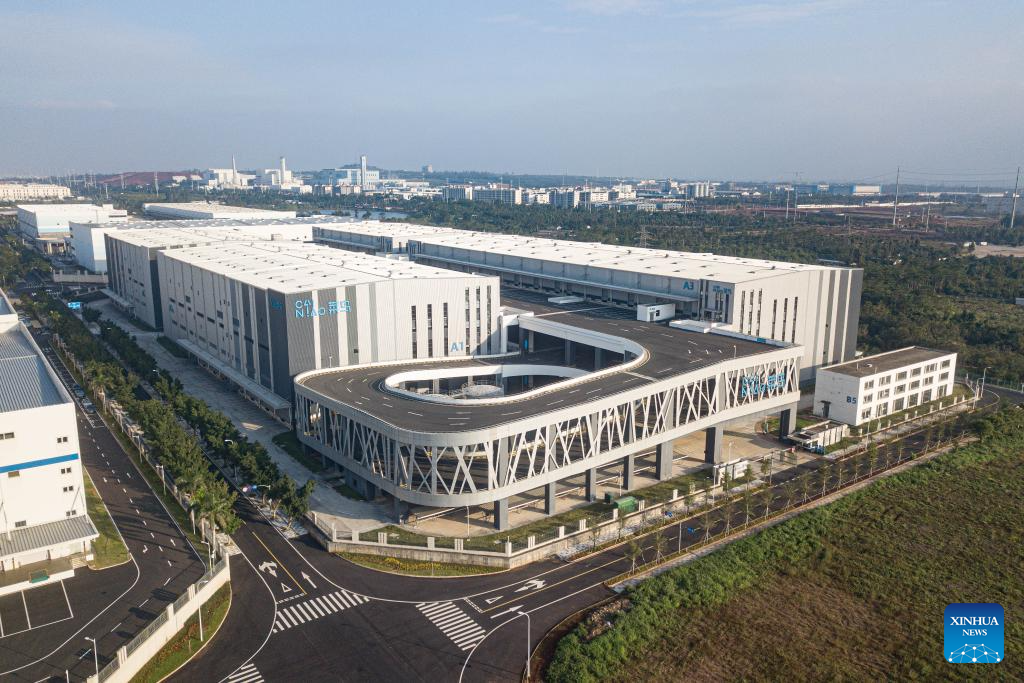 An aerial drone photo taken on Nov. 23, 2025 shows a view of the Haikou Comprehensive Bonded Zone in Chengmai County, south China's Hainan Province. China's Hainan Free Trade Port (FTP) is preparing for island-wide special customs operations, a major milestone in the opening-up drive of the world's second-largest economy despite rising protectionism worldwide.