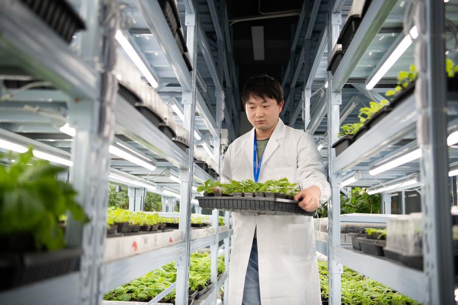 HEFEI, Dec. 13 (Xinhua) -- At the laboratory of Magicpen Bio in Hefei, east China's Anhui Province, Chinese researchers have successfully cultivated a number of gene-edited plants that steadily glimmer in dark environments. They managed to introduce gene fragments from organisms such as fireflies into plant cells, allowing the latter to glimmer by themselves.