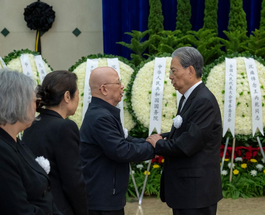 Zhao, a member of the Standing Committee of the Political Bureau of the Communist Party of China Central Committee and chairman of the NPC Standing Committee, along with others, bid farewell to Wang at the Guangzhou funeral home. ■