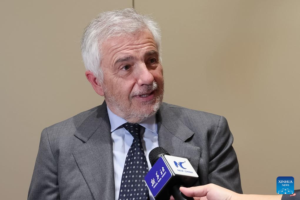 Vice president of the International Olympic Committee (IOC) Juan Antonio Samaranch Junior talks during an interview in Budapest, Hungary, on Dec. 15, 2025. (Photo by Attila Volgyi/Xinhua)