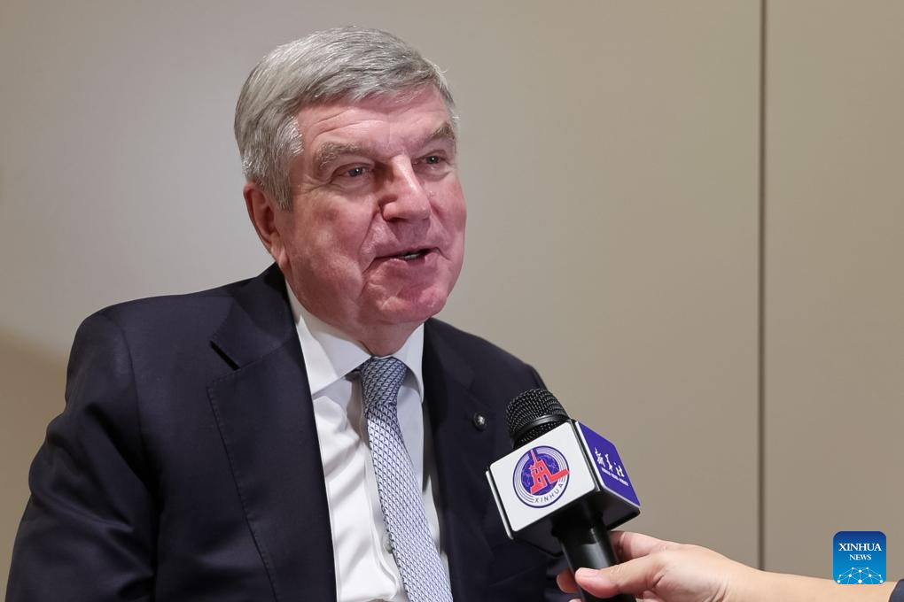 International Olympic Committee (IOC) Honorary President for Life Thomas Bach talks during an interview in Budapest, Hungary, on Dec. 15, 2025. (Photo by Attila Volgyi/Xinhua)