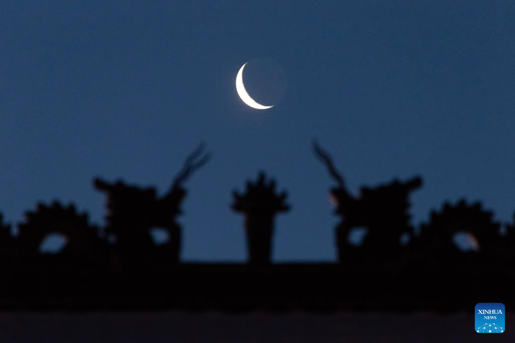 This year's thinnest crescent moon is seen in Fujin City, northeast China's Heilongjiang Province, Dec. 16, 2025. (Photo by Qu Yubao/Xinhua)