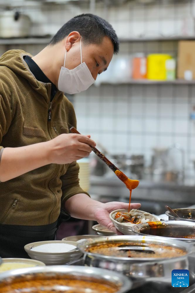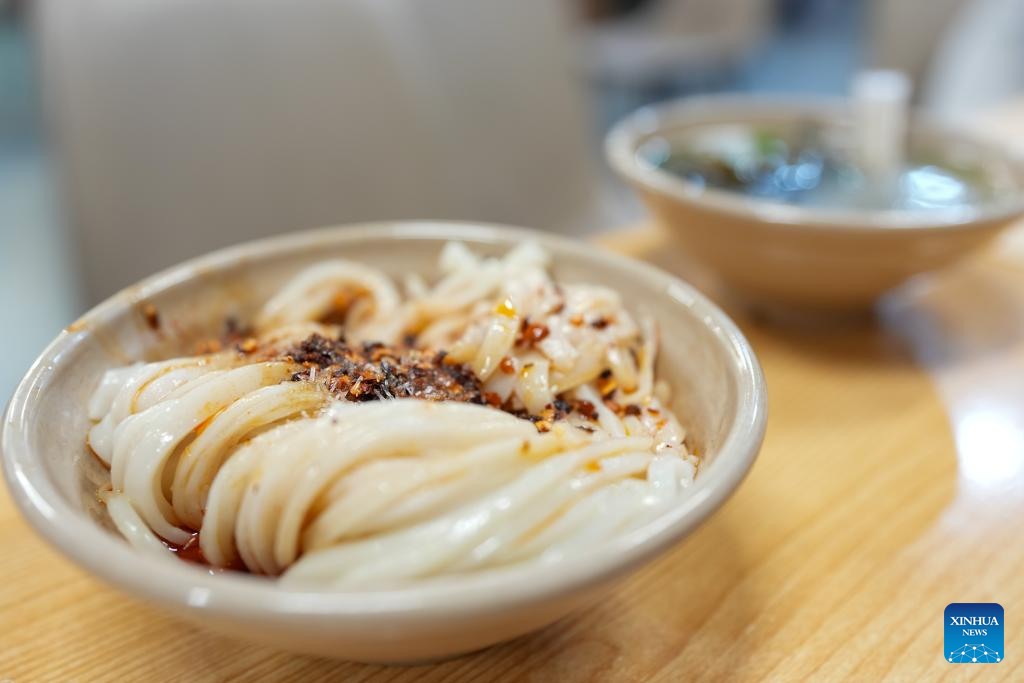 A chef prepares cold noodles at a restaurant in Guangyuan City, southwest China's Sichuan Province, Dec. 12, 2025. (Xinhua/Huang Wei)