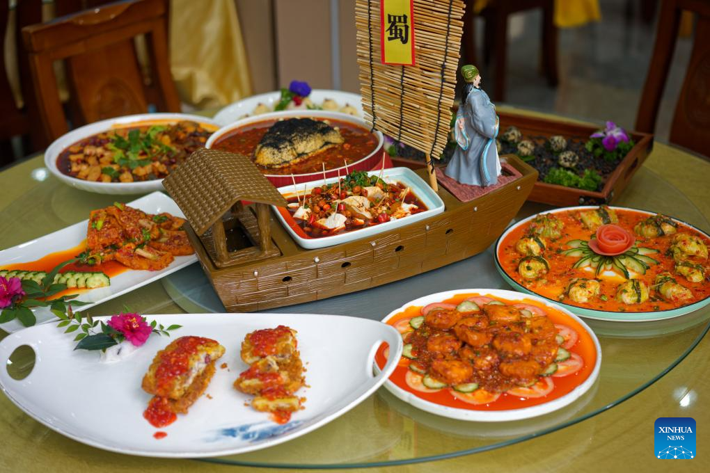 This photo taken on Dec. 13, 2025 shows the tofu banquet at a restaurant in Jian'ge County of Guangyuan City, southwest China's Sichuan Province. (Xinhua/Zhang Xiaoyu)