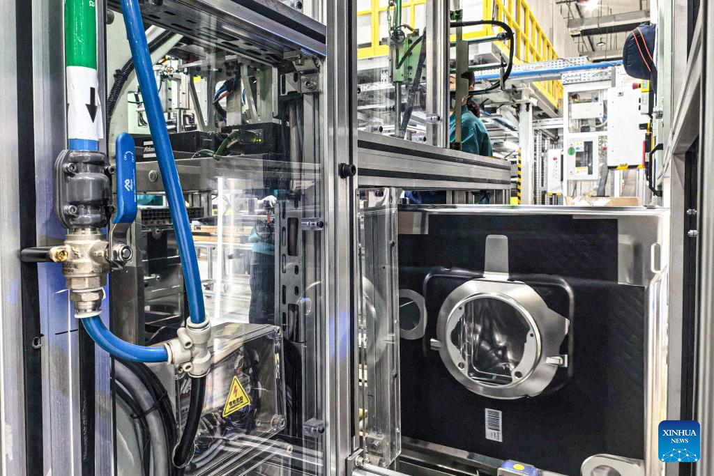 HEFEI, Dec. 17 (Xinhua) -- At BSH Home Appliances Group's dishwasher factory in Chuzhou, Anhui Province in east China, fully automated AGV robots shuttle components along precise routes, while AI-powered quality inspection systems detect microscopic flaws at high speed. A large screen displays real-time production status with colored dots -- a vivid symbol of intelligence and innovation that defines this facility.