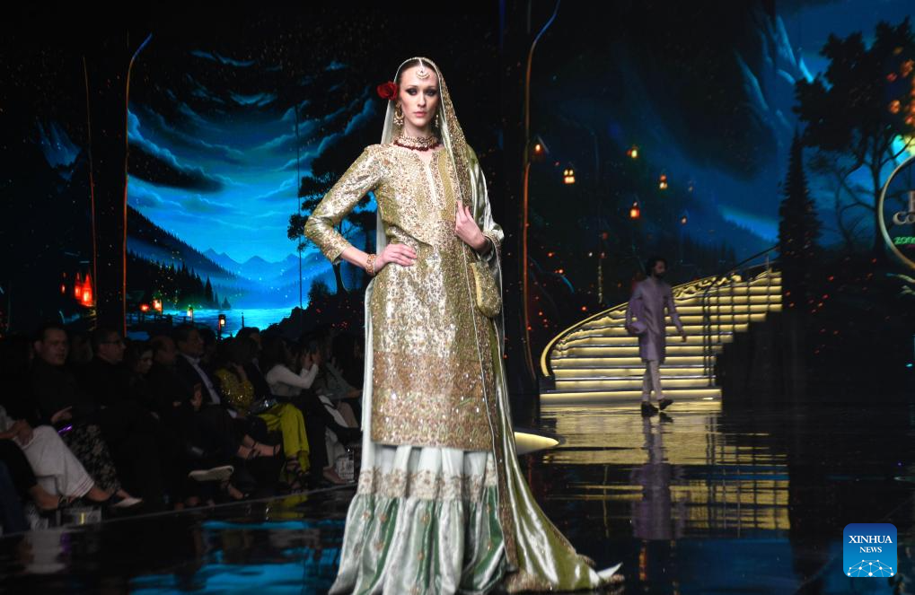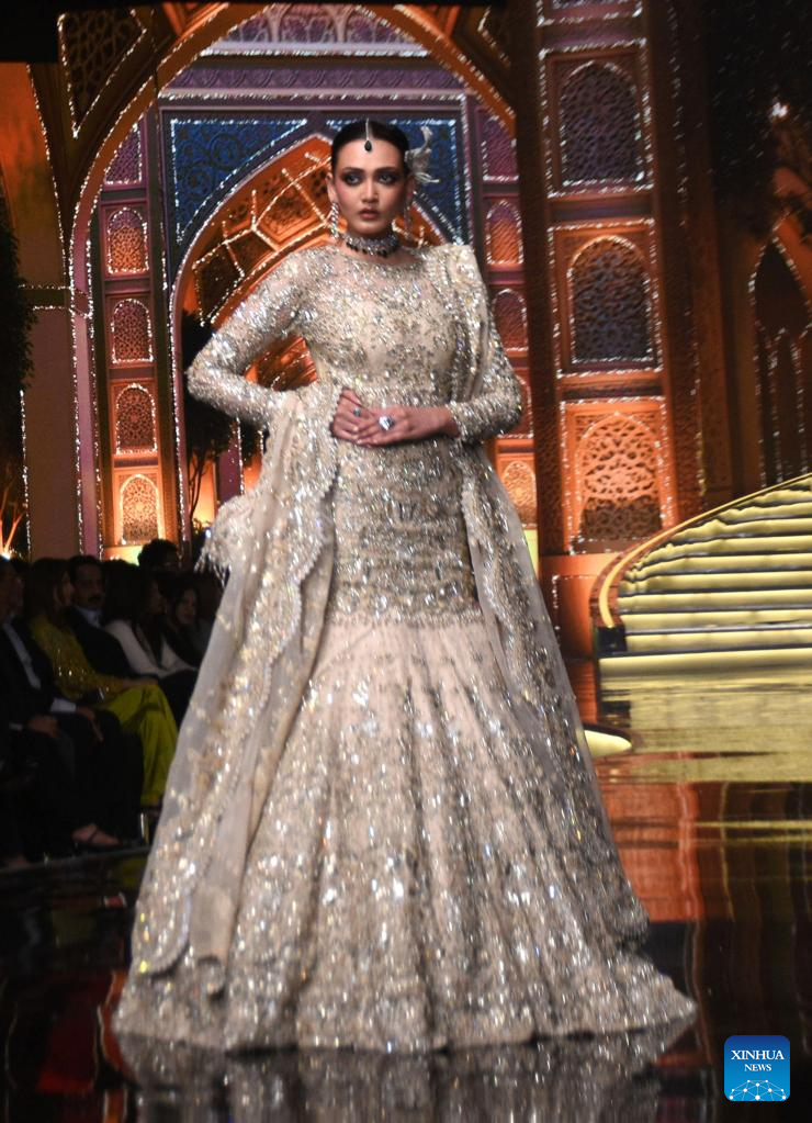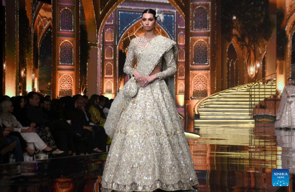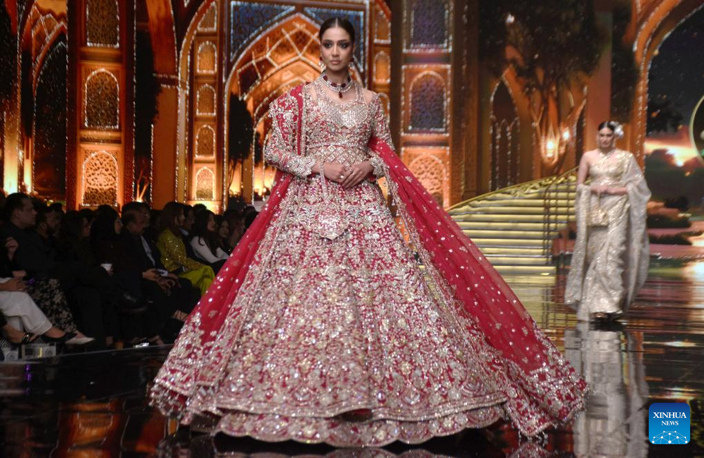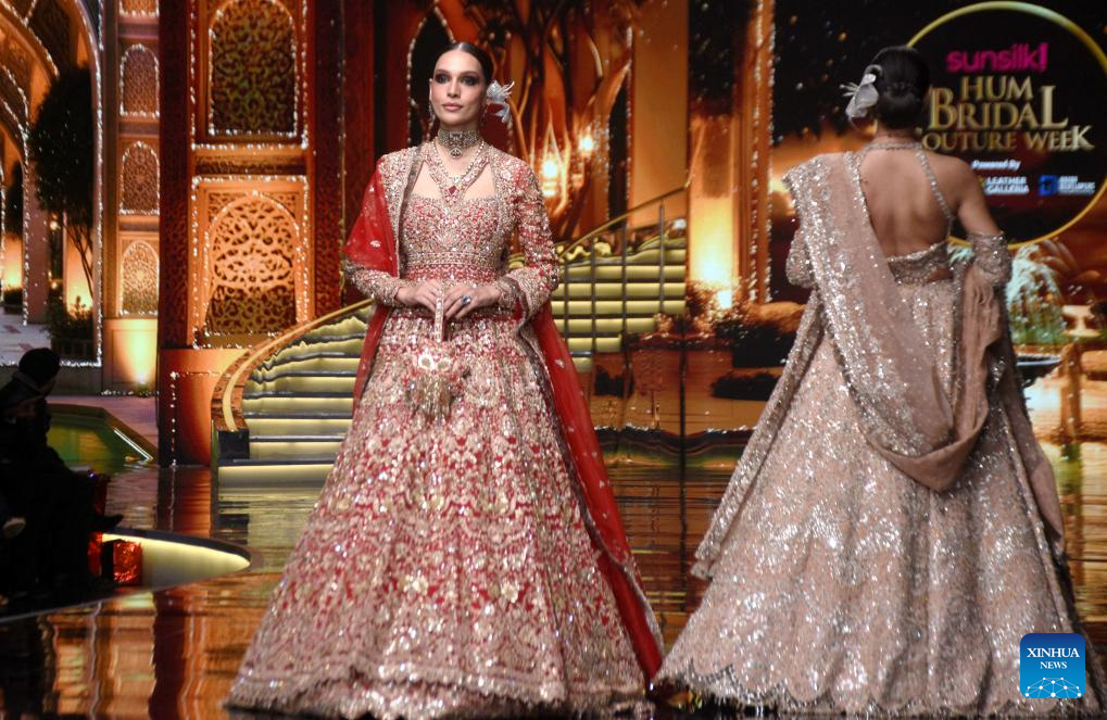 Models present creations during the Hum Bridal Couture Week fashion show in Lahore, Pakistan on Dec. 21, 2025. (Photo by Sajjad/Xinhua)