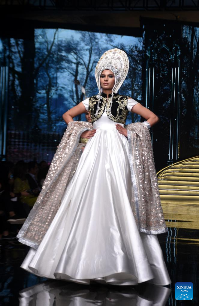 A model presents a creation during the Hum Bridal Couture Week fashion show in Lahore, Pakistan on Dec. 21, 2025. (Photo by Sajjad/Xinhua)
