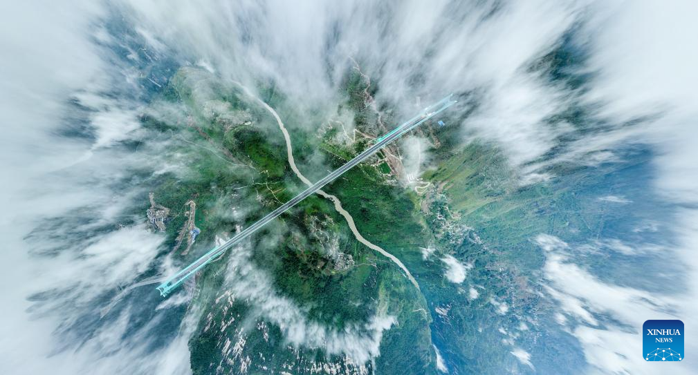 An aerial drone photo taken on Sept. 26, 2025 shows the Huajiang Grand Canyon Bridge in southwest China's Guizhou Province. The bridge, soaring 625 meters above the Beipan River in Guizhou's mountainous terrain, is the world's highest bridge. It opened to traffic on Sept. 28, 2025. (Xinhua/Ou Dongqu)
