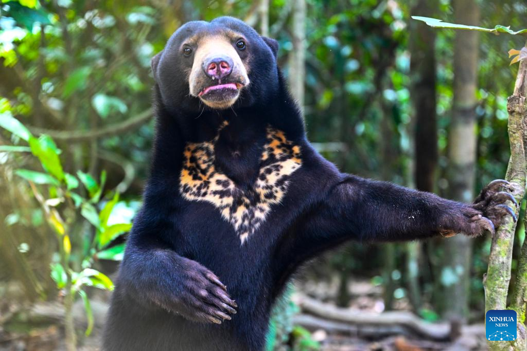 This photo taken on Jan. 19, 2026 shows a Malayan sun bear (Helarctos malayanus) in Sandakan, Malaysia. (Xinhua/Cheng Yiheng)