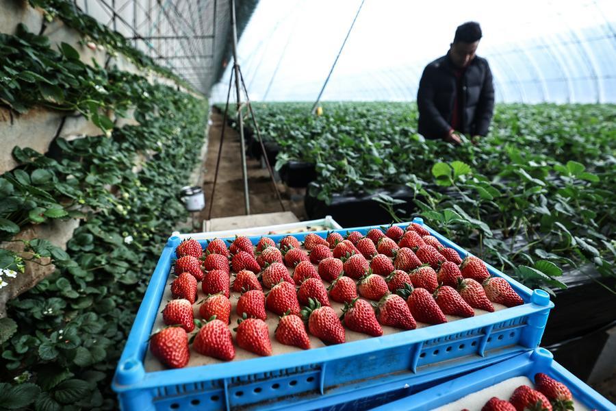 SHENYANG, Jan. 27 (Xinhua) -- Donggang City of Dandong, northeast China's Liaoning Province has become the country's largest strawberry production and export base, with a cultivation history of over a century. The strawberries of Donggang are known for their plump shape and sweet taste thanks to the favorable planting conditions.