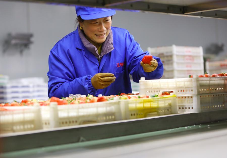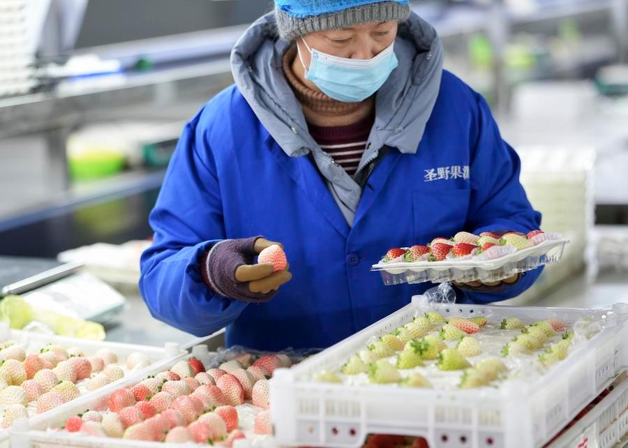A worker packs freshly-picked strawberries at a strawberry processing center in Donggang City, Dandong, northeast China's Liaoning Province, Jan. 24, 2017. (Xinhua/Li Gang)A staff member works at a strawberry processing center in Donggang City, Dandong, northeast China's Liaoning Province, Jan. 11, 2026. (Xinhua/Li Gang)