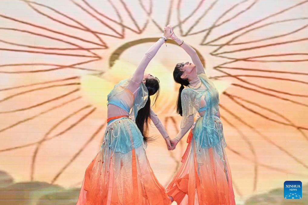 Actors perform a dance at a Spring Festival gala in Cairo, Egypt, on Feb. 8, 2026. The gala was held here on Sunday to celebrate the upcoming Chinese Spring Festival, where participants enjoyed traditional Chinese cuisine, experienced intangible cultural heritages, and watched cultural performances. (Xinhua/Xin Mengchen)