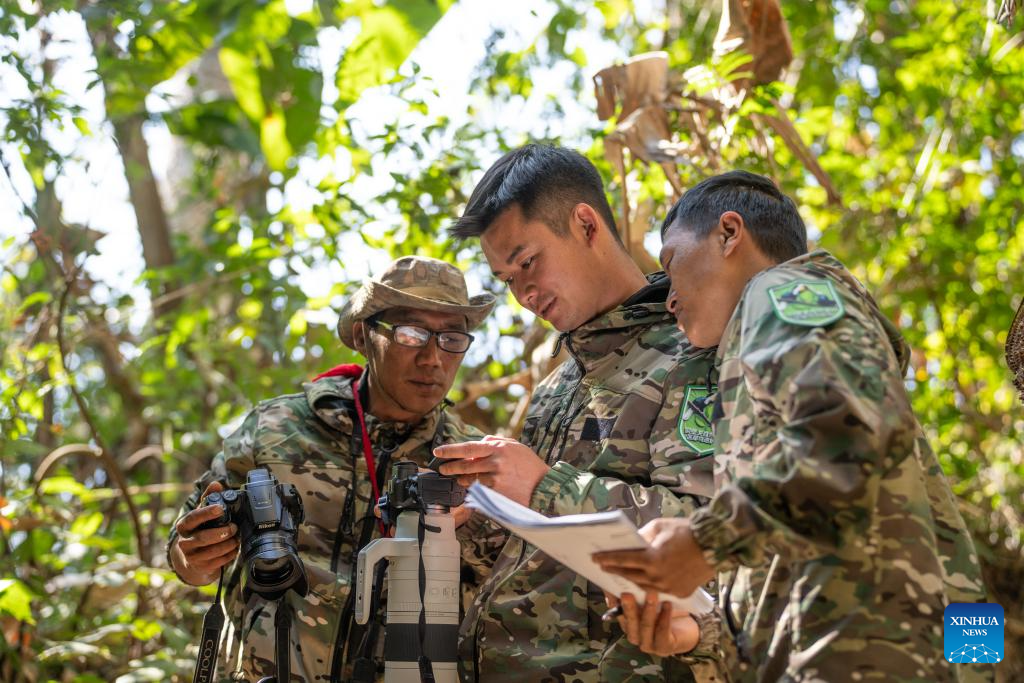 The "Hornbill Patrol Team" is composed of local villagers and forest rangers. Since its establishment in 2021, the team has grown to 26 members. Apart from patrolling, many of them also work as bird-watching guides or are involved in the ecological industry, achieving a positive interaction between ecological conservation and community development. (Xinhua/Gao Yongwei)