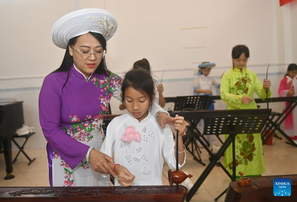 In 2023, after becoming a member of the National Committee of the Chinese People's Political Consultative Conference, Su Haizhen felt a stronger sense of mission and responsibility to preserve and promote China's traditional culture. While advocating for Duxianqin education in schools, she has been exploring ways to further highlight the cultural appeal of the art. Leveraging Dongxing's geographical proximity to Vietnam, she aims to foster deeper cultural exchanges and cooperation between China and ASEAN countries like Vietnam. (Xinhua/Lu Boan)
