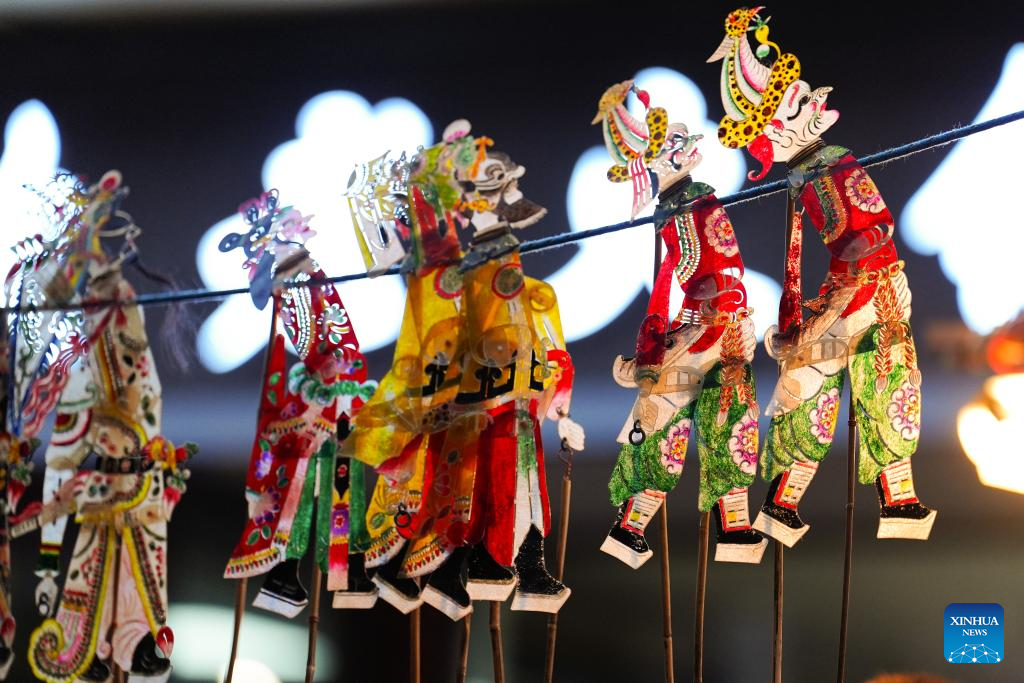 Shadow puppets are pictured at the Xinyi Society in Xining, capital city of northwest China's Qinghai Province, Jan. 25, 2026. (Xinhua/Qi Zhiyue)