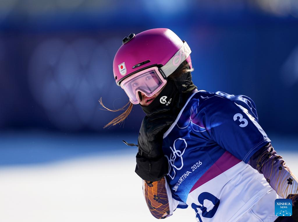 Yoshida Remi of Japan competes during the snowboard women's cross seeding at the Milan-Cortina 2026 Olympic Winter Games in Livigno, Italy, Feb. 13, 2026. (Xinhua/Wu Huiwo)