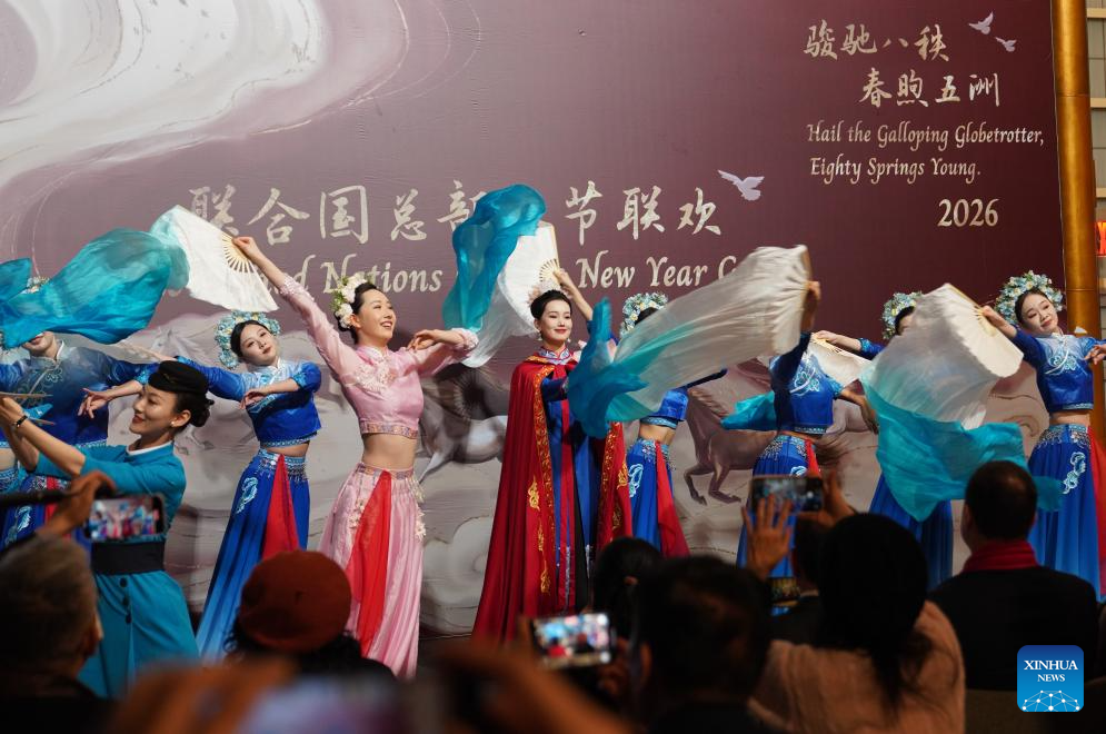 People perform traditional Chinese dance at a Chinese New Year gala at the UN headquarters in New York, on Feb. 12, 2026. (Xinhua/Zhang Fengguo)
