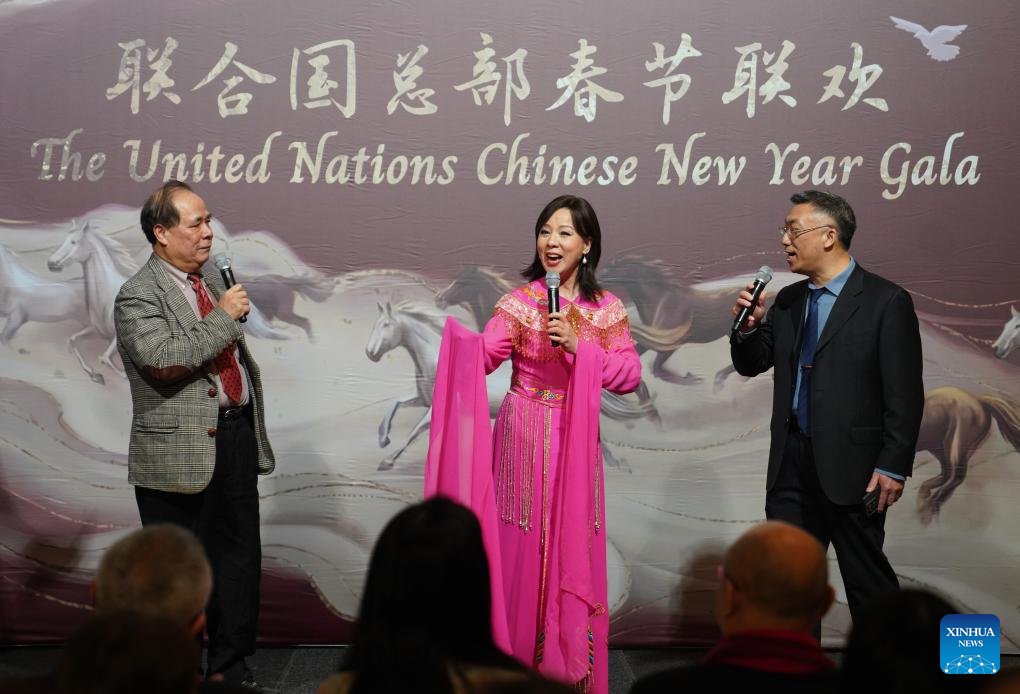 People perform Huangmei opera at a Chinese New Year gala at the UN headquarters in New York, on Feb. 12, 2026. (Xinhua/Zhang Fengguo)