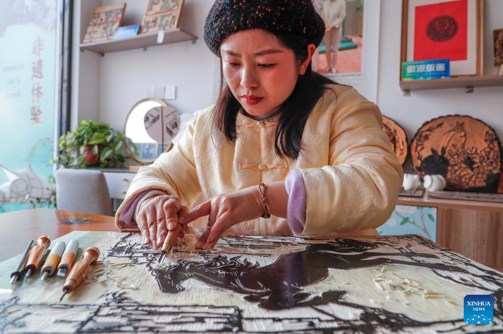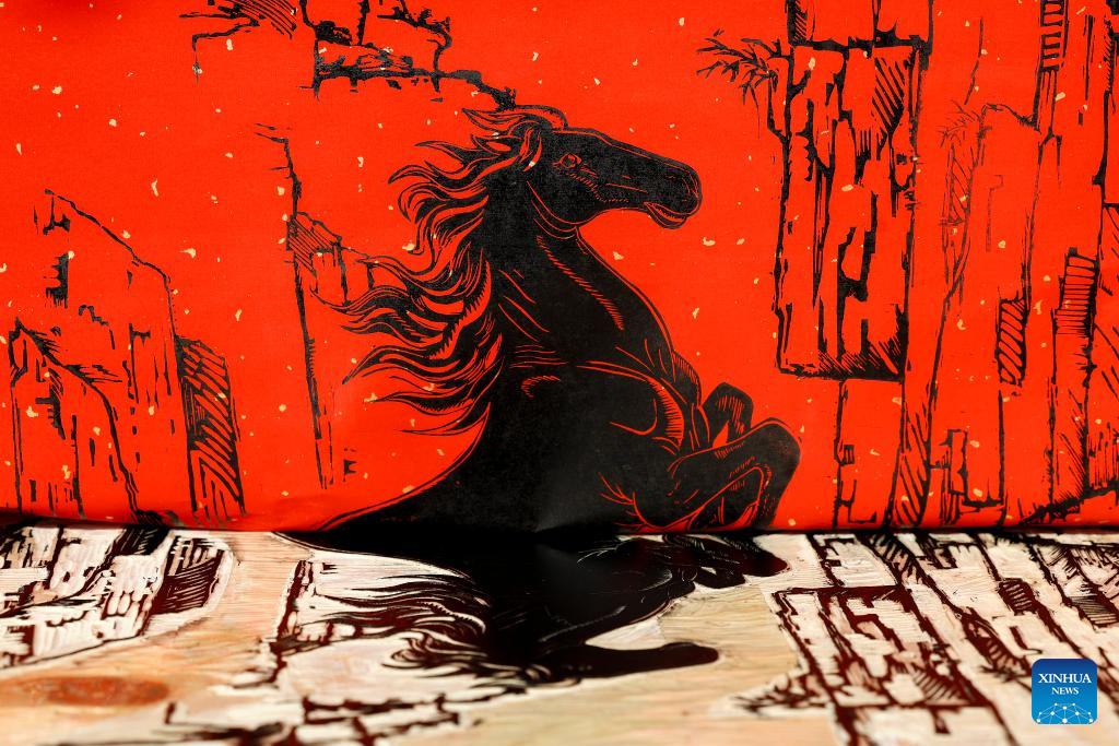 This year's Spring Festival marks the beginning of the Year of the Horse. With the vivid horse designs, the ingeniously crafted Huizhou woodblock print, a provincial-level intangible cultural heritage, adds an enduring charm to the authentic Chinese aesthetics. (Photo by Shi Yalei/Xinhua)