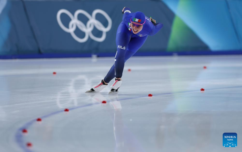 Francesca Lollobrigida of Italy competes during the speed skating women's 5000m final at the Milan-Cortina 2026 Olympic Winter Games in Milan, Italy, Feb. 12, 2026. (Xinhua/Li Jing)