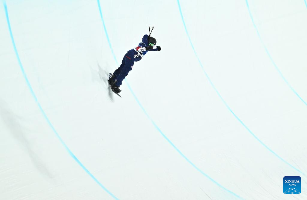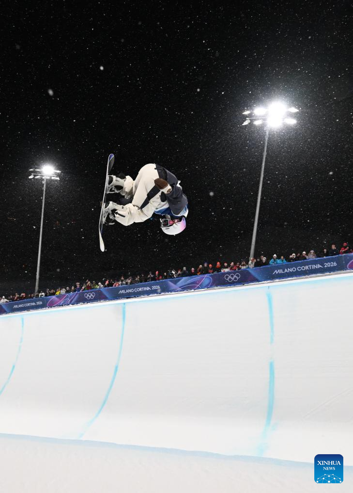 (260212) -- LIVIGNO, Feb. 12, 2026 (Xinhua) -- Wu Shaotong of China competes during the women's snowboard halfpipe final at the Milan-Cortina 2026 Olympic Winter Games in Livigno, Italy, Feb. 12, 2026. (Xinhua/Zhang Hongxiang)