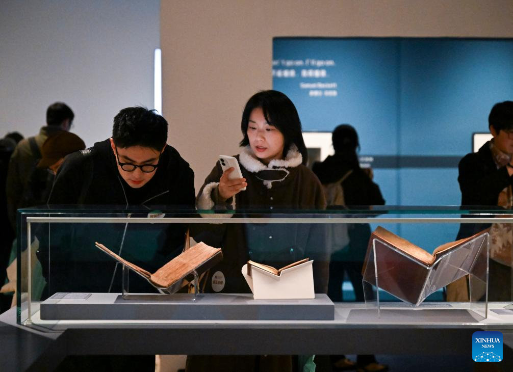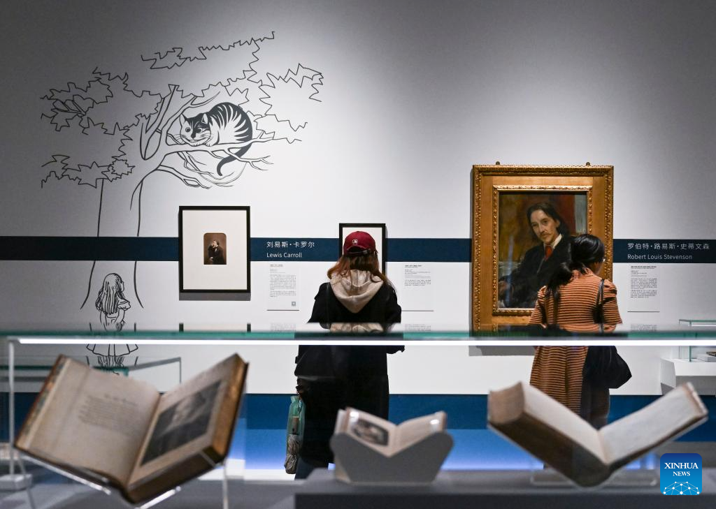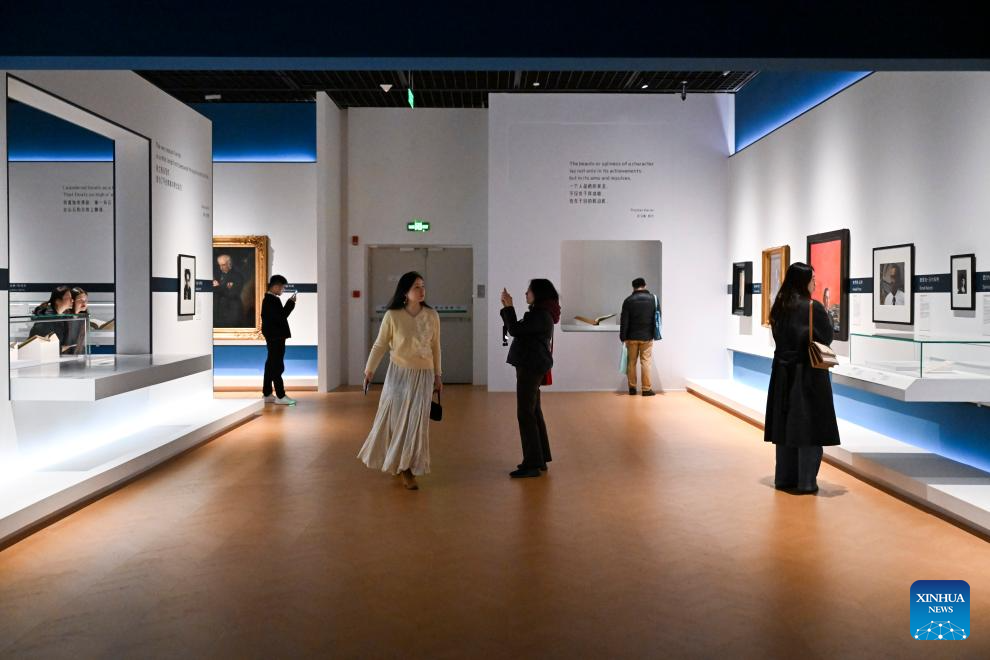 People visit the media preview of the exhibition "Writers Revealed: Treasures from British Collections and the National Portrait Gallery, London" at the Shanghai Museum in Shanghai, east China, March 17, 2026. The exhibition, held jointly by the Shanghai Museum and London's National Portrait Gallery, will open to the public from March 18. (Xinhua/Chen Haoming)