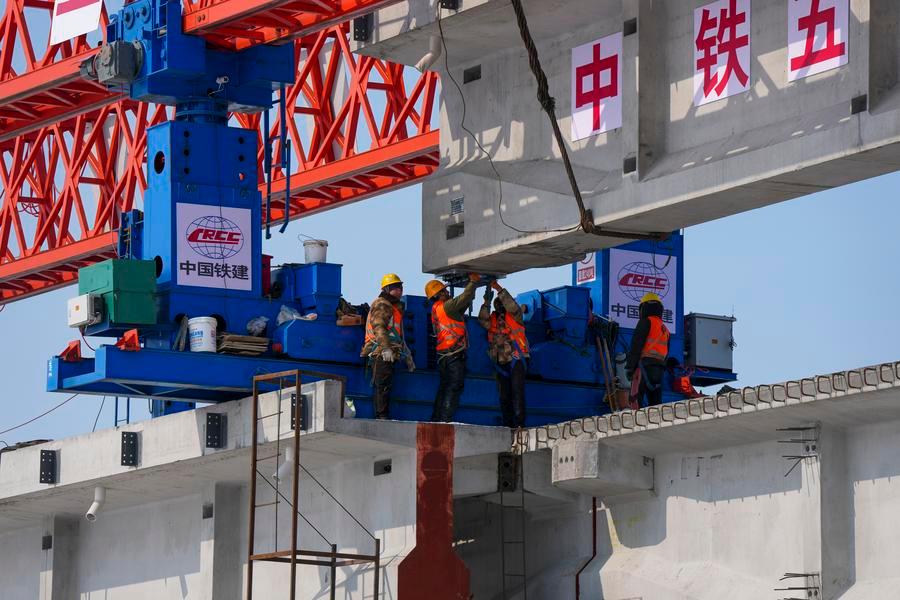 The 10,435-meter bridge is expected to triple the line's train handling capacity, boosting cargo transport between China and Europe.