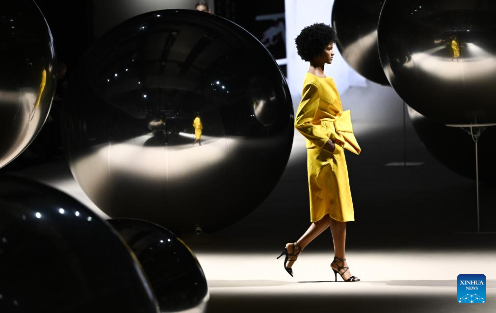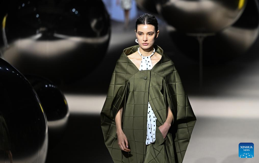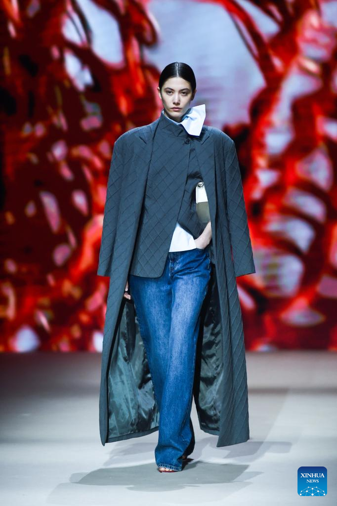 A model presents creations of Coosy x Miguel Palacio during the Mercedes-Benz Fashion Week in Madrid, Spain, on March 20, 2026. (Xinhua/Cheng Min)