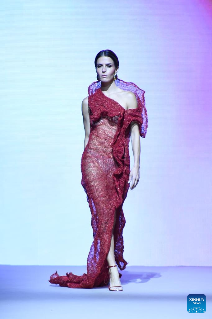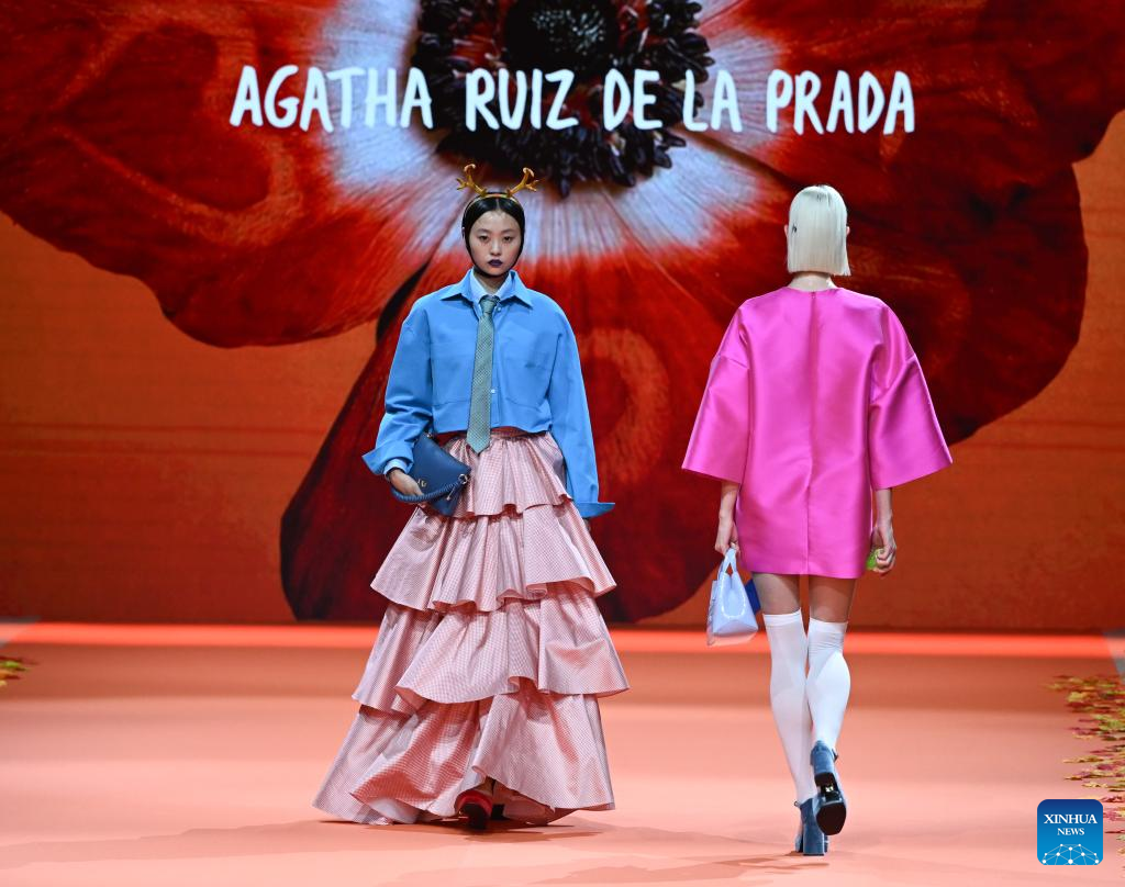 A model presents creations of Agatha Ruiz de la Prada during the Mercedes-Benz Fashion Week in Madrid, Spain, on March 20, 2026. (Xinhua/Cheng Min)
