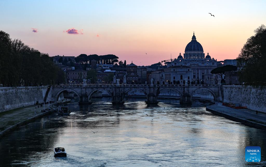 Photo taken on March 25, 2026 shows sunset view in Rome, capital of Italy. (Xinhua/Wang Kaiyan)