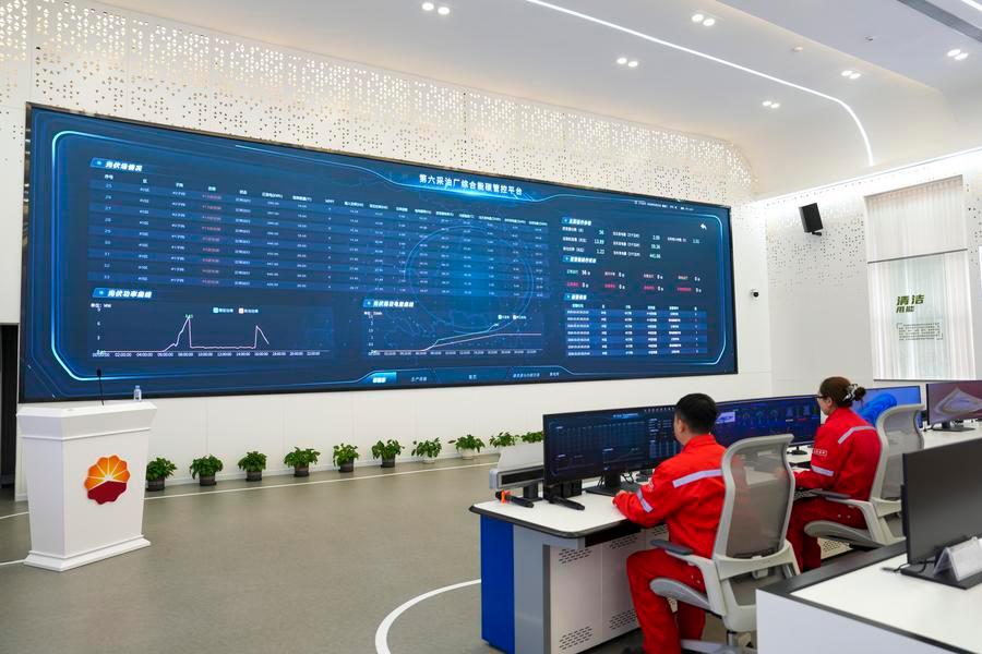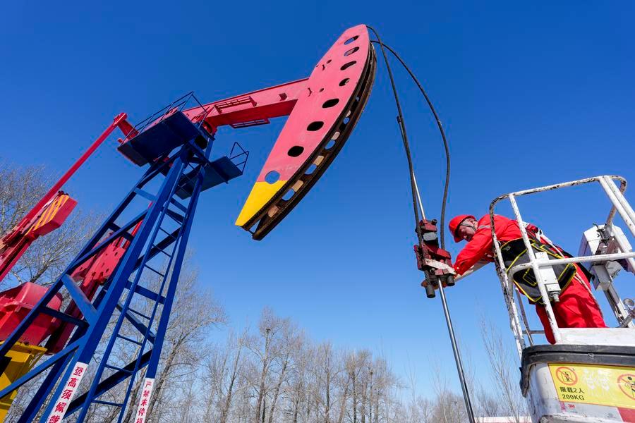 An aerial drone photo taken on March 25, 2026 shows the photovoltaic panels at the low-carbon demonstration zone of Lamadian Oilfield in Daqing, northeast China's Heilongjiang Province. (Xinhua/Wang Song)A worker maintains a pumpjack at Daqing Oilfield in Daqing, northeast China's Heilongjiang Province, March 6, 2026. (Xinhua/Wang Song)Technicians inspect the photovoltaic power generation equipment at the low-carbon demonstration zone of Lamadian Oilfield in Daqing, northeast China's Heilongjiang Province, March 25, 2026. (Xinhua/Wang Song)A technician inspects the photovoltaic power generation equipment at the low-carbon demonstration zone of Lamadian Oilfield in Daqing, northeast China's Heilongjiang Province, March 25, 2026. (Xinhua/Wang Song)Technicians check the operation of the wind power equipment at the low-carbon demonstration zone of Lamadian Oilfield in Daqing, northeast China's Heilongjiang Province, March 25, 2026. (Xinhua/Wang Song)An aerial drone photo taken on March 25, 2026 shows the pumpjacks at the low-carbon demonstration zone of Lamadian Oilfield in Daqing, northeast China's Heilongjiang Province. (Xinhua/Wang Song)A drone photo taken on March 25, 2026 shows the wind power generation equipment at the low-carbon demonstration zone of Lamadian Oilfield in Daqing, northeast China's Heilongjiang Province. (Xinhua/Wang Song)An aerial drone photo taken on March 25, 2026 shows the photovoltaic panels at the low-carbon demonstration zone of Lamadian Oilfield in Daqing, northeast China's Heilongjiang Province. (Xinhua/Wang Song)A technician inspects the photovoltaic power generation equipment at the low-carbon demonstration zone of Lamadian Oilfield in Daqing, northeast China's Heilongjiang Province, March 25, 2026. (Xinhua/Wang Song)Staff members monitor the operation data of new energy equipment at the intelligent command center of Lamadian Oilfield in Daqing, northeast China's Heilongjiang Province, March 25, 2026. (Xinhua/Wang Song)