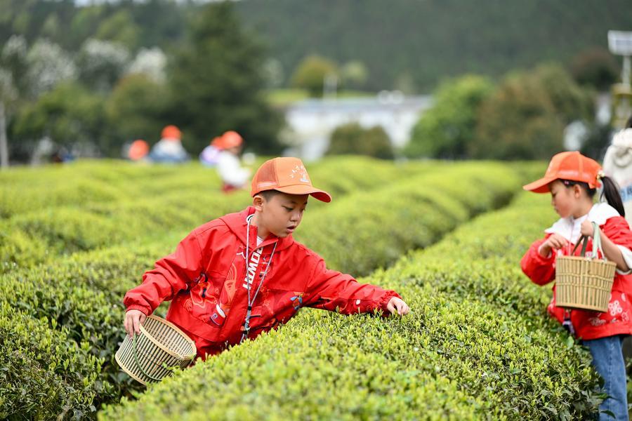 Various spring-themed immersive activities are organized at tourist attractions to offer visitors a fresh taste of the season, such as digging and cooking bamboo shoots at a Sichuan bamboo forest resort, or hiking among tea bushes at Mengding Mountain, known for its tea tradition in the province.