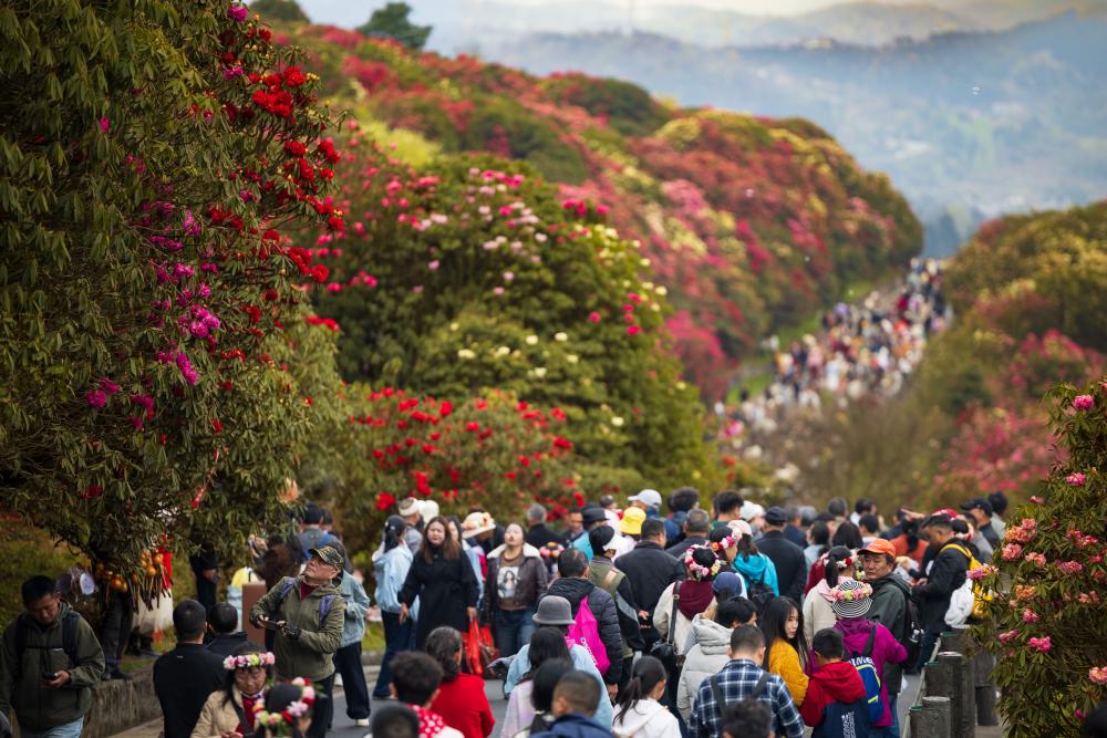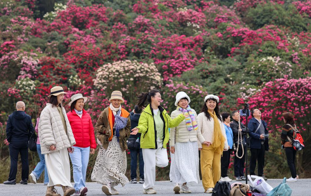 Tourists visit an azalea scenic area in Bijie City, southwest China's Guizhou Province, March 29, 2026. (Photo by Li Hua/Xinhua)Forest rangers patrol at Baili Azalea Nature Reserve in Bijie City, southwest China's Guizhou Province, April 2, 2026. (Xinhua/Yang Wenbin) An aerial drone photo shows tourists visiting an azalea scenic area in Bijie City, southwest China's Guizhou Province, April 1, 2026. (Xinhua/Yang Wenbin)Tourists visit an azalea scenic area in Bijie City, southwest China's Guizhou Province, April 1, 2026. (Xinhua/Liu Xu)An aerial drone photo shows azaleas shrouded in morning mist at an azalea scenic area in Bijie City, southwest China's Guizhou Province, April 1, 2026. (Photo by Chen He/Xinhua)People sing a song of the Dong ethnic group at an azalea scenic area in Bijie City, southwest China's Guizhou Province, April 1, 2026. (Xinhua/Yang Wenbin)Tourists visit an azalea scenic area in Bijie City, southwest China's Guizhou Province, March 26, 2026. (Photo by Chen Xi/Xinhua)Tourists visit an azalea scenic area in Bijie City, southwest China's Guizhou Province, March 26, 2026. (Photo by Hu Panxue/Xinhua)
