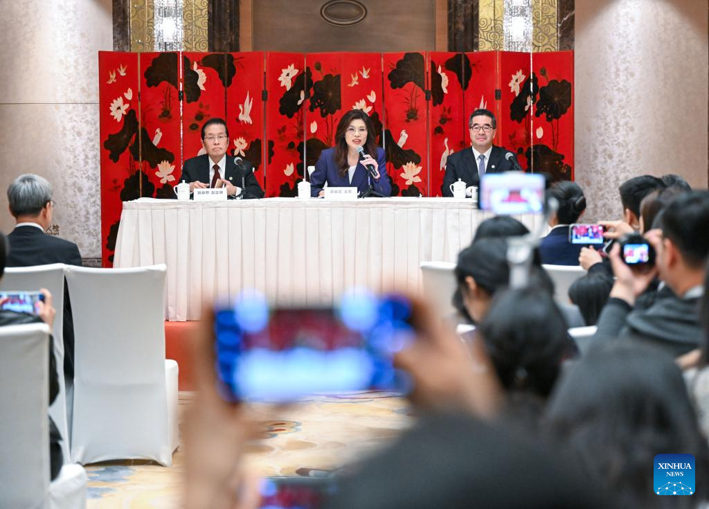 A press conference is held by a delegation of the Chinese Kuomintang (KMT) party in Beijing, capital of China, April 10, 2026. (Xinhua/Chen Yehua)