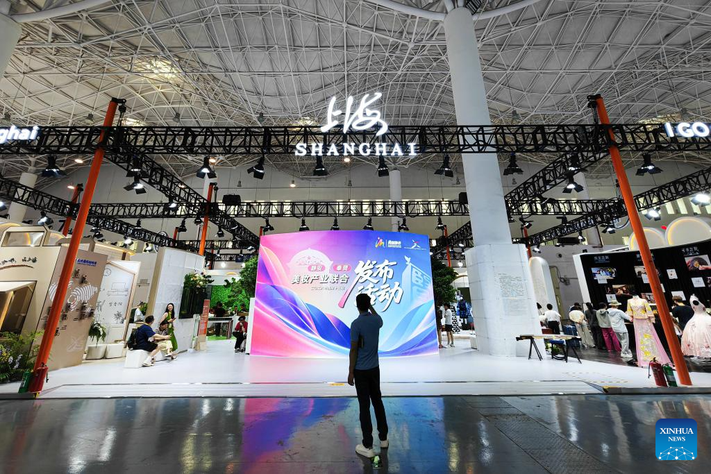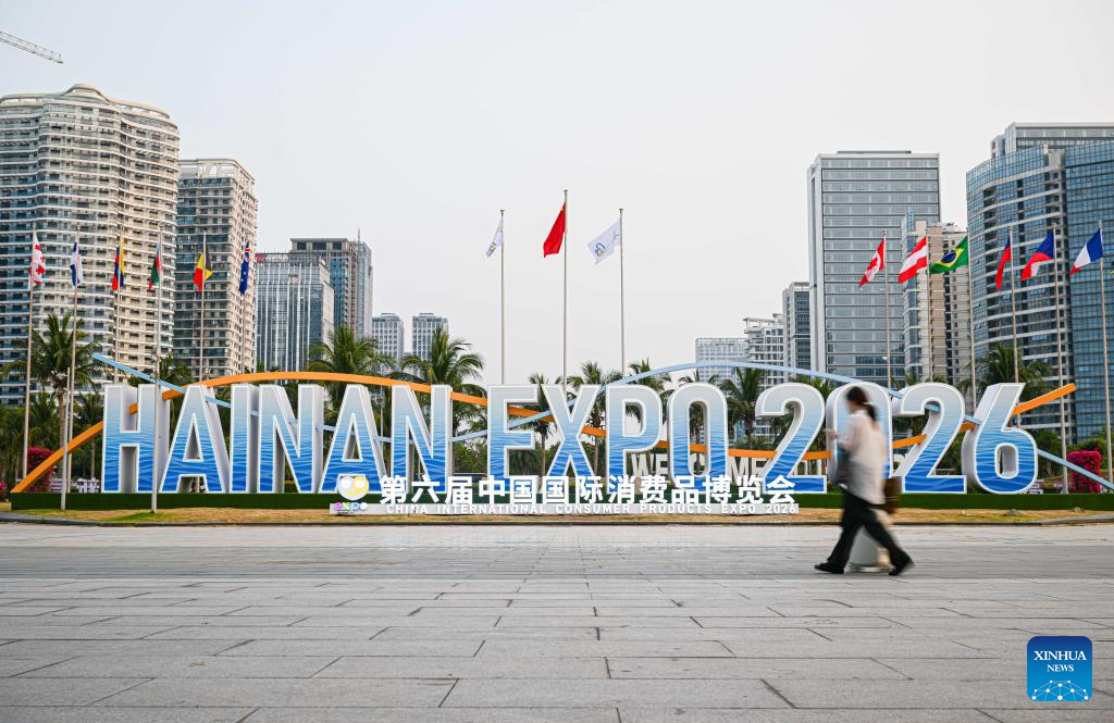 The exhibition booth of Shanghai, guest province of honor, is pictured at the Hainan International Convention and Exhibition Center, the main venue for the upcoming sixth China International Consumer Products Expo (CICPE), in Haikou, south China's Hainan Province, April 11, 2026. Scheduled to take place in south China's Hainan Province from April 13 to 18, this expo will see the participation of more than 3,400 brands from over 60 countries and regions. (Xinhua/Pu Xiaoxu)