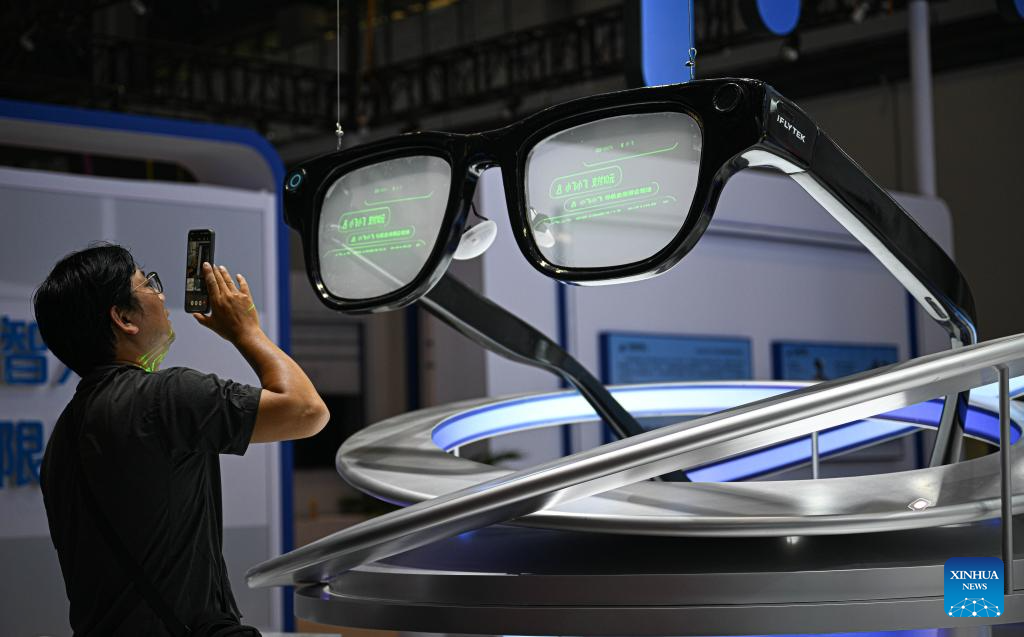 An AI glasses model is pictured at the Hainan International Convention and Exhibition Center, the main venue for the upcoming sixth China International Consumer Products Expo (CICPE), in Haikou, south China's Hainan Province, April 10, 2026. Scheduled to take place in south China's Hainan Province from April 13 to 18, this expo will see the participation of more than 3,400 brands from over 60 countries and regions. (Xinhua/Pu Xiaoxu)