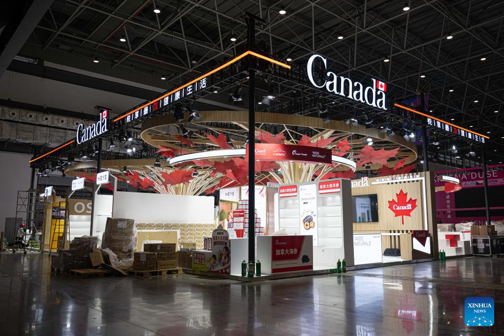 This photo taken on April 10, 2026 shows a view of the national pavilion of Canada, guest of honor of the sixth China International Consumer Products Expo (CICPE), at the Hainan International Convention and Exhibition Center, the main venue for the upcoming sixth CICPE, in Haikou, south China's Hainan Province. Scheduled to take place in south China's Hainan Province from April 13 to 18, this expo will see the participation of more than 3,400 brands from over 60 countries and regions. (Xinhua/Pu Xiaoxu)