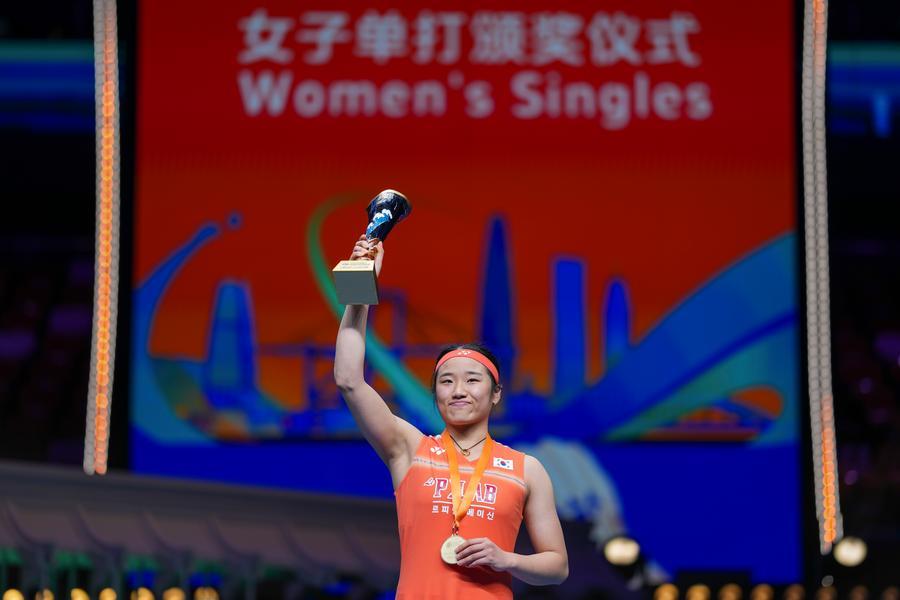 NINGBO, China, April 12 (Xinhua) -- China's Shi Yuqi and South Korea's An Se-young claimed men's and women's singles titles respectively at the 2026 Badminton Asia Championships on Sunday, each securing their first crown at the continental event.