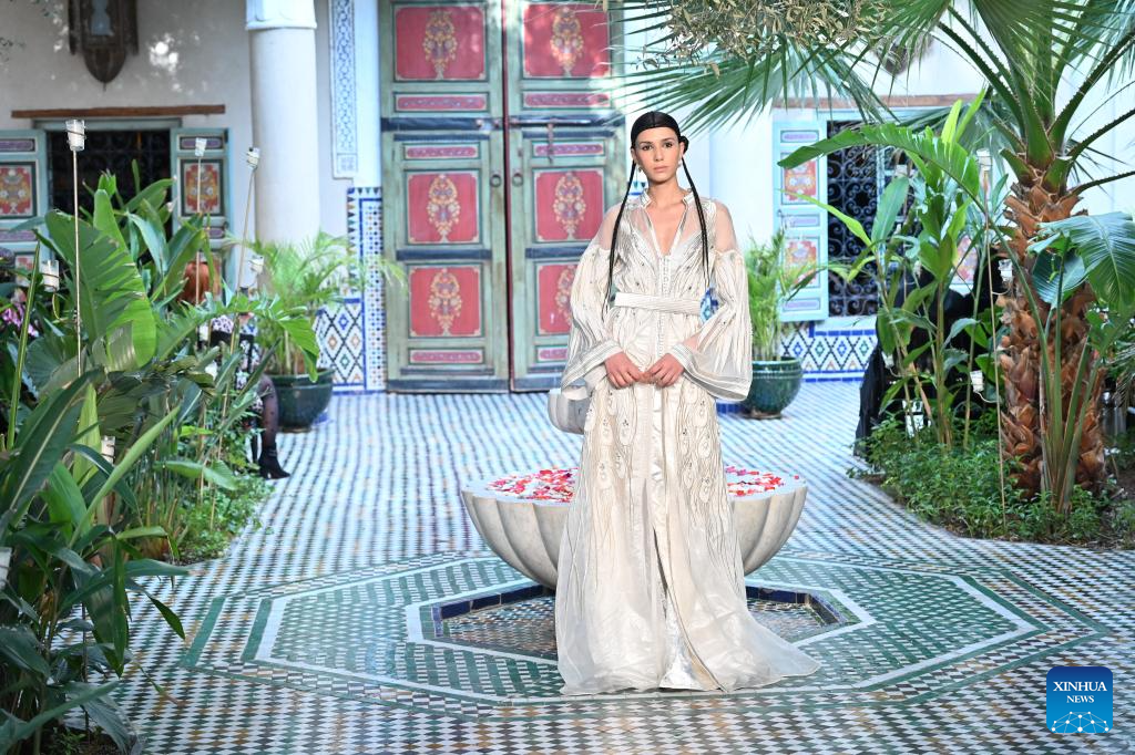 A model presents a creation during the Morocco Fashion Week 2026 in Marrakech, Morocco, on April 11, 2026. (Photo by Aissa/Xinhua)
