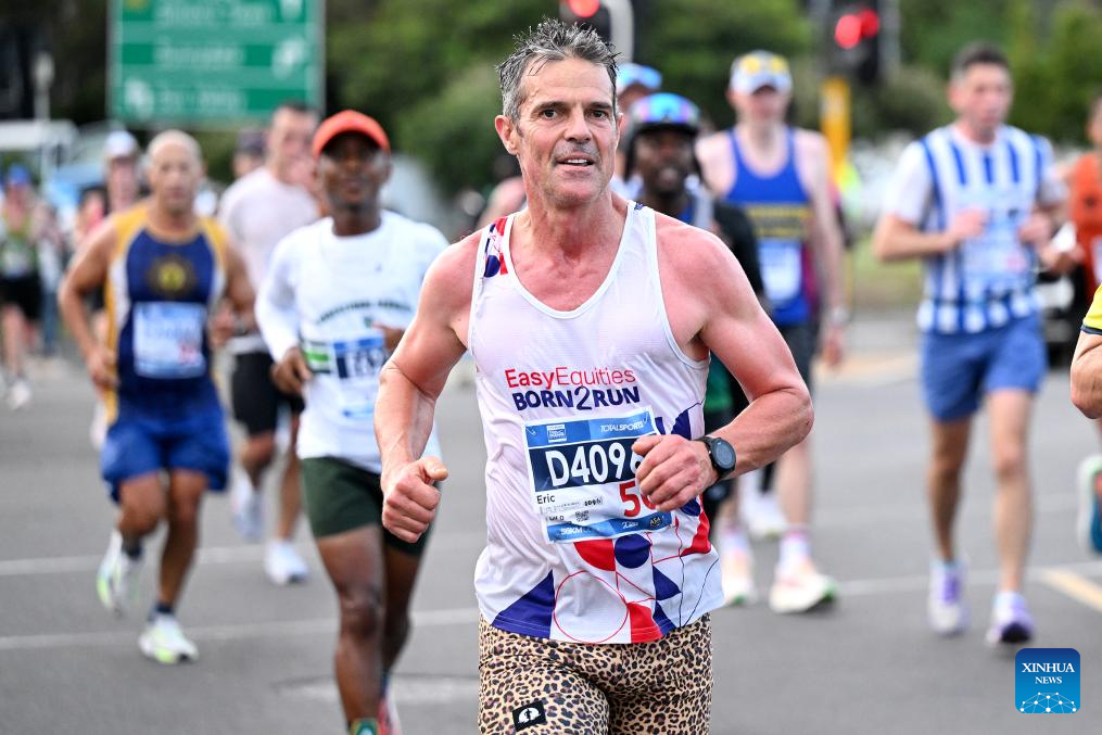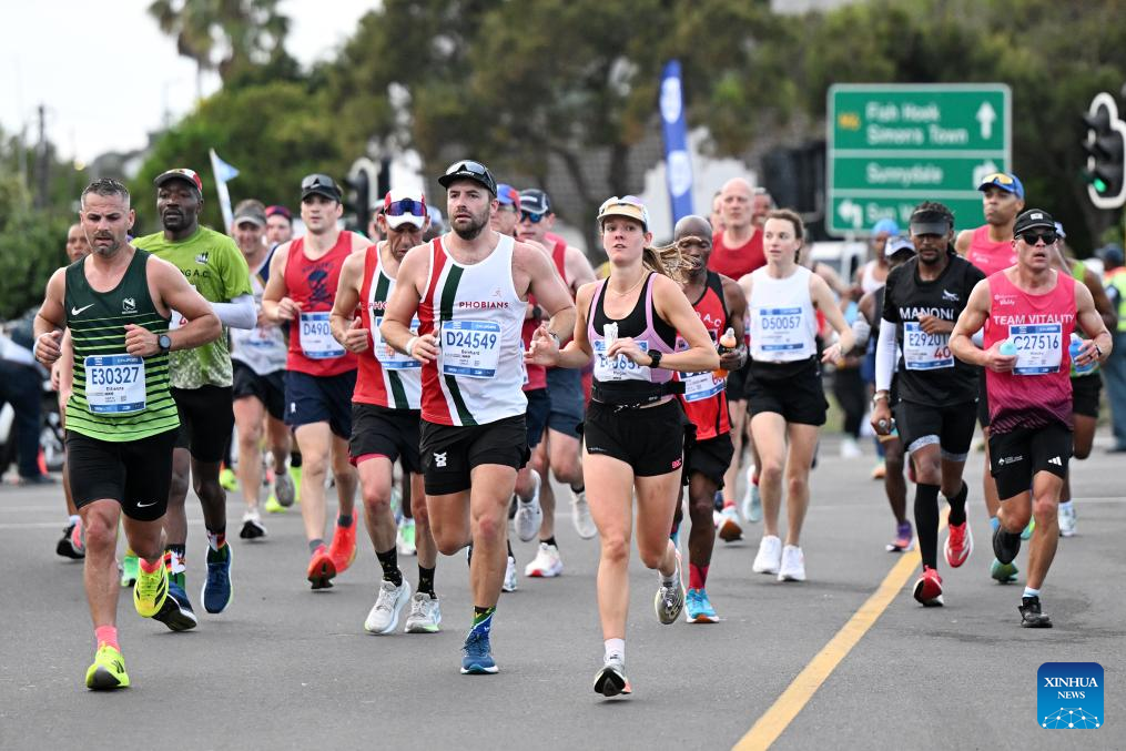 Participants run during the 2026 Two Oceans Marathon in Cape Town, South Africa, on April 11, 2026. (Photo by Xabiso Mkhabela/Xinhua)