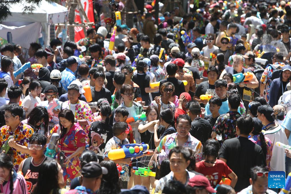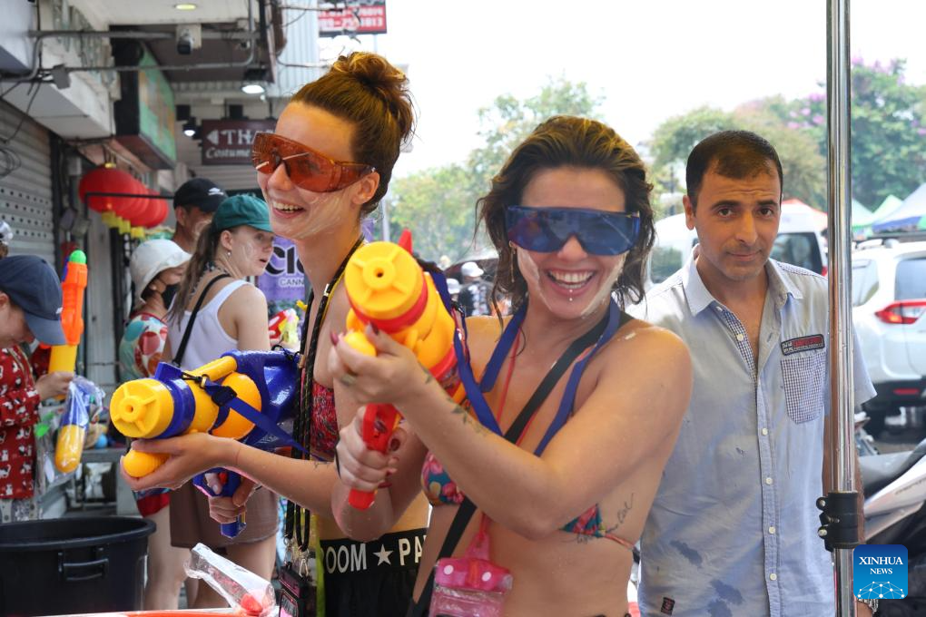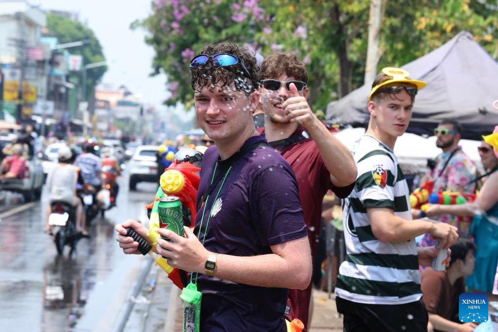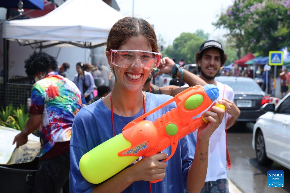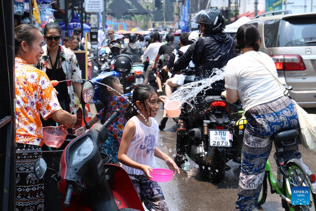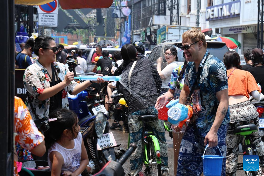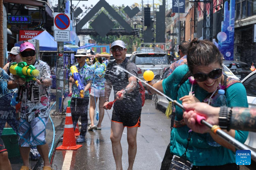 People take part in the celebration of the Songkran festival in Chiang Mai, Thailand, April 13, 2026. Songkran, a traditional Thai New Year festival, is celebrated from April 13 to 15 this year, during which people express greetings by splashing water on each other. (Xinhua/Sun Weitong)